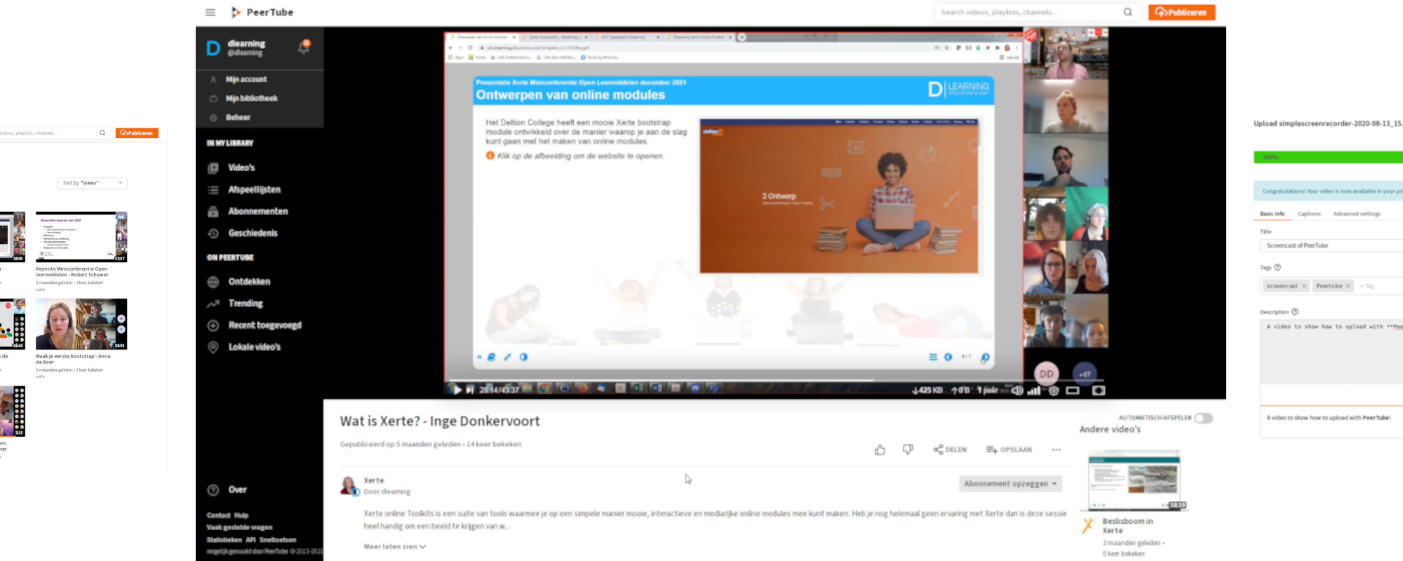 Met PeerTube bepaal je zelf hoe je video’s publiceert: openbaar, verborgen of alleen toegankelijk voor specifieke gebruikers. De interface is vergelijkbaar met YouTube en Vimeo en kan worden aangepast aan de huisstijl van je organisatie. Video’s zijn eenvoudig te embedden in online leermodules en leeromgevingen.